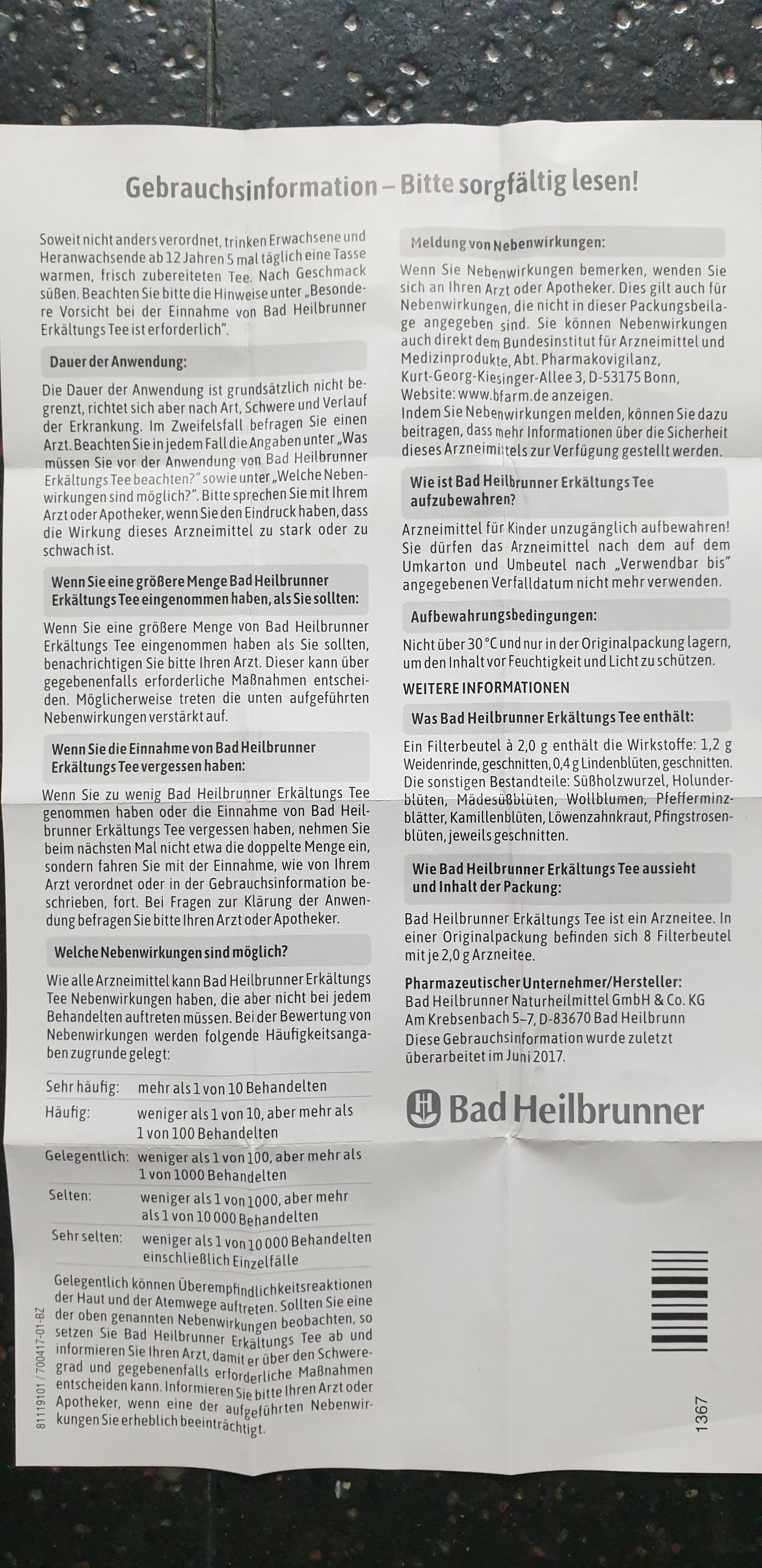 Bad Heilbrunner Naturheilmittel GmbH & Co. KG Am Krebsenbach 5-7, D-83670 Bad Heilbrunn 이 전단지는 2017년 6월에 마지막으로 개정되었습니다.